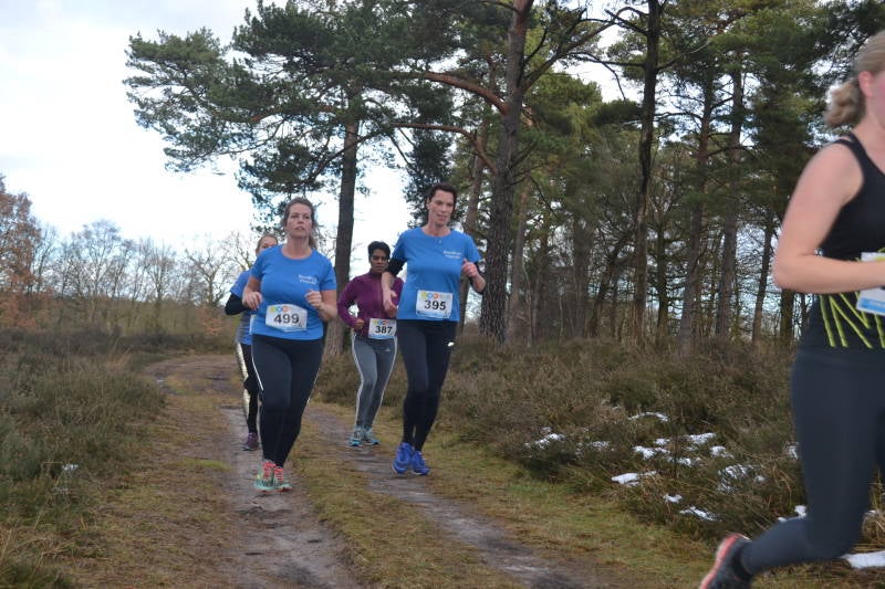 Imelda, Lisette, Leonie en Desiree lopen Holtingerveldtrail